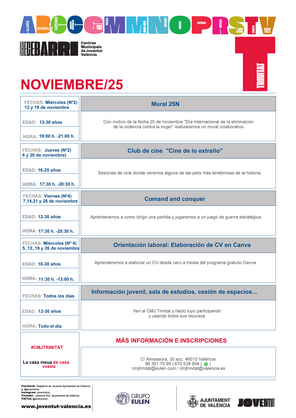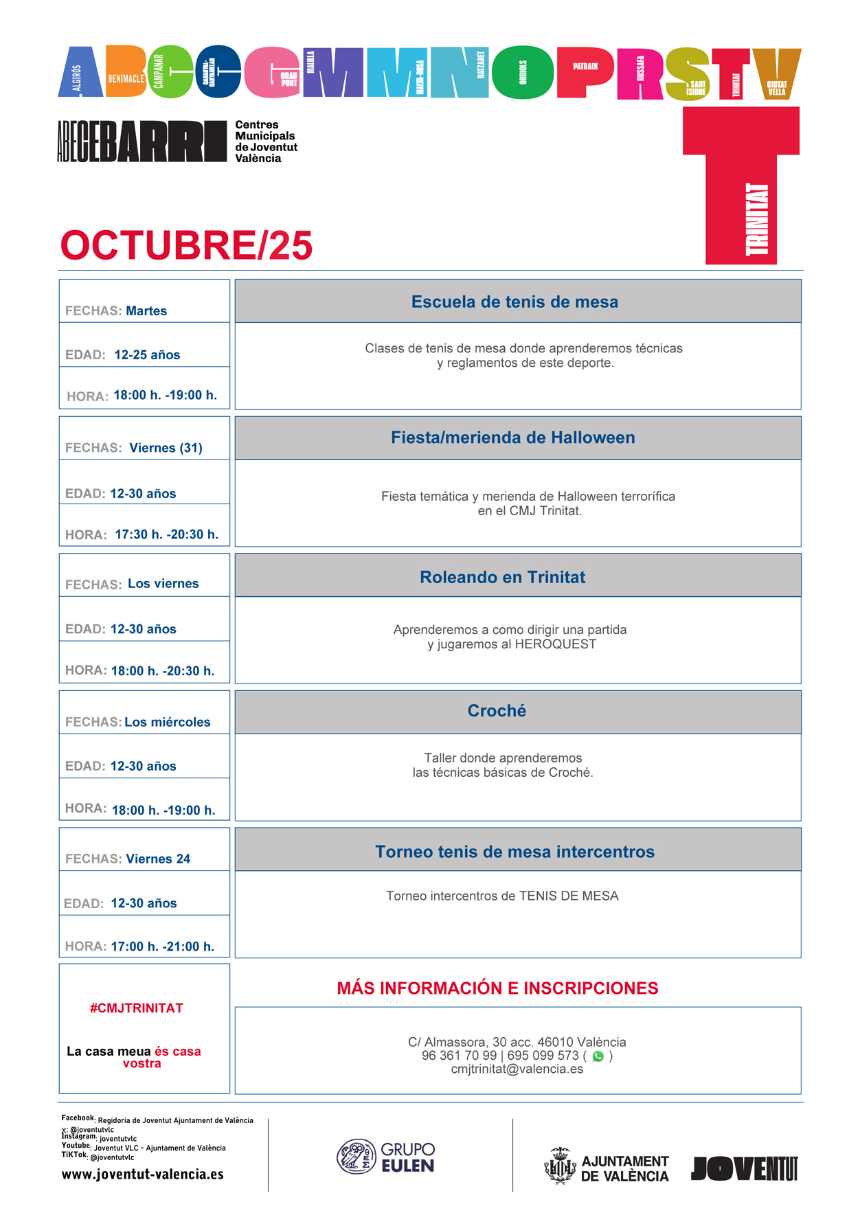 El Centro Municipal de Juventud Trinitat es un punto de encuentro de los jóvenes del barrio y referente de las entidades que trabajan con esta población y los centros educativos.