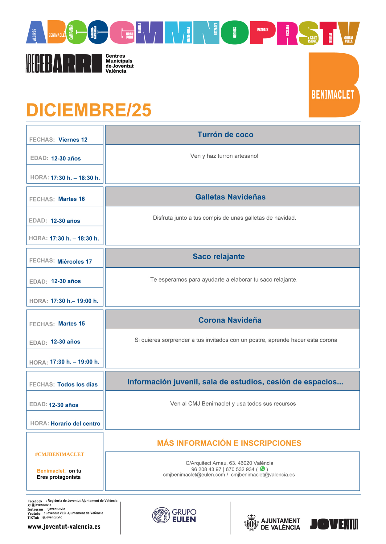 En el CMJ Benimaclet tienes toda la información de interés para la juventud además de talleres y actividades gratuitas para jóvenes.
