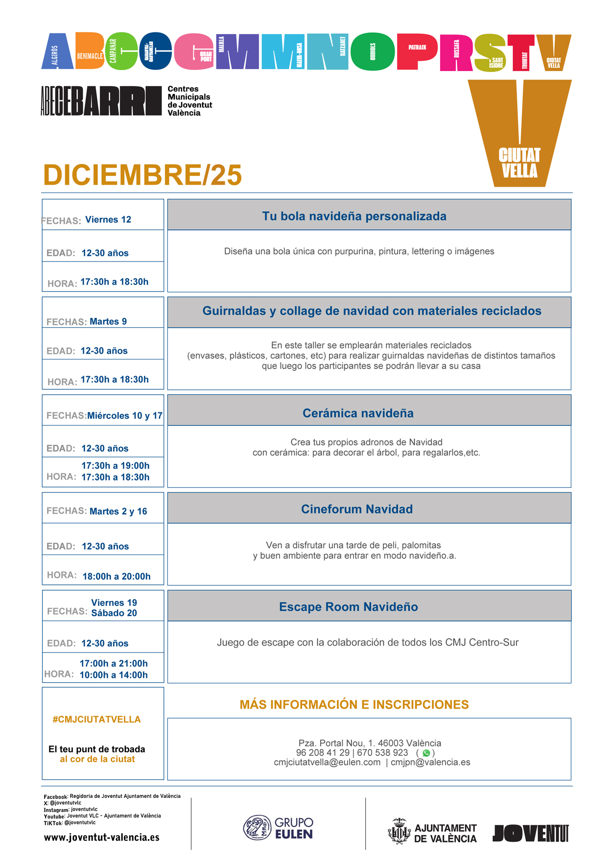 El CMJ Ciutat Vella es un lugar donde puedes encontrar tu espacio para desarrollar nuevas habilidades, aprender idiomas, disfrutar con los juegos de mesa y conocer gente de tu edad.